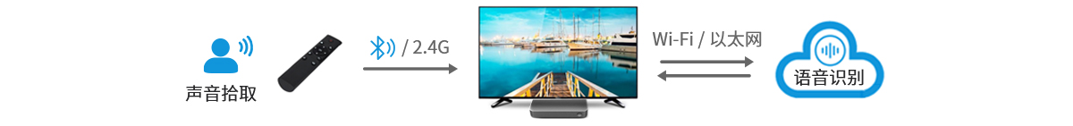 對于智能語音遙控器,用戶按下語音識別鍵后,遙控器告知電視啟動語音識別功能,同時拾取用戶語音,將音頻數據發送至電視,電視根據云端識別結果執行節目搜索或打開相關應用。